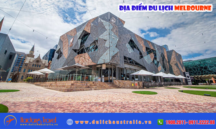 Quảng trường Federation Square là trung tâm văn hóa và sinh hoạt cộng đồng nổi tiếng của Melbourne, tọa lạc ngay khu vực trung tâm thành phố. Nơi đây thường xuyên diễn ra các sự kiện nghệ thuật, lễ hội và hoạt động ngoài trời thu hút đông đảo du khách. Kiến trúc hiện đại kết hợp không gian mở tạo nên điểm dừng chân lý tưởng khi ghé Melbourne.