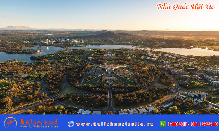 - +/ Ngày 3: Di chuyển đến Canberra – tham quan Nhà Quốc Hội, hồ Burley Griffin, Thư viện Quốc Gia.